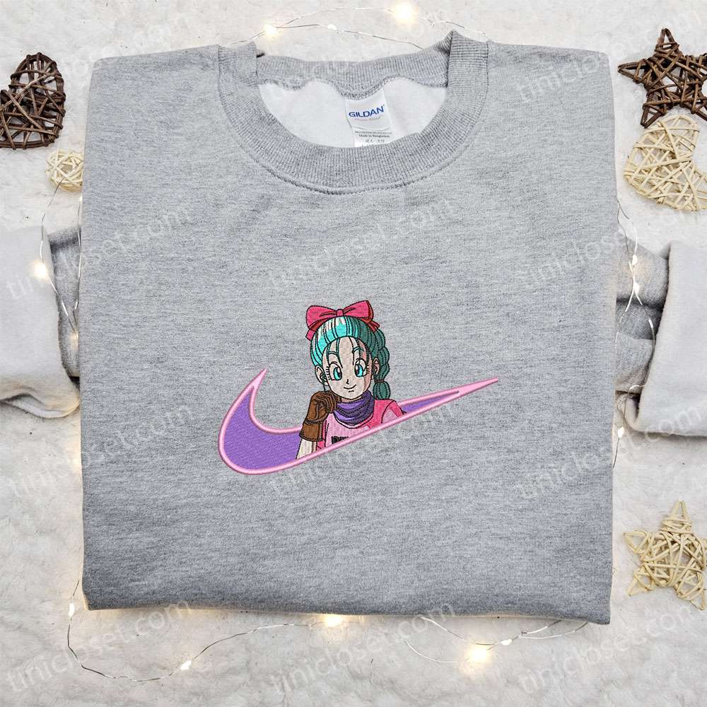 Bulma X Nike Swoosh Anime Embroidered Shirt, Dragon Ball Embroidered Shirt, Nike Inspired Embroidered Shirt