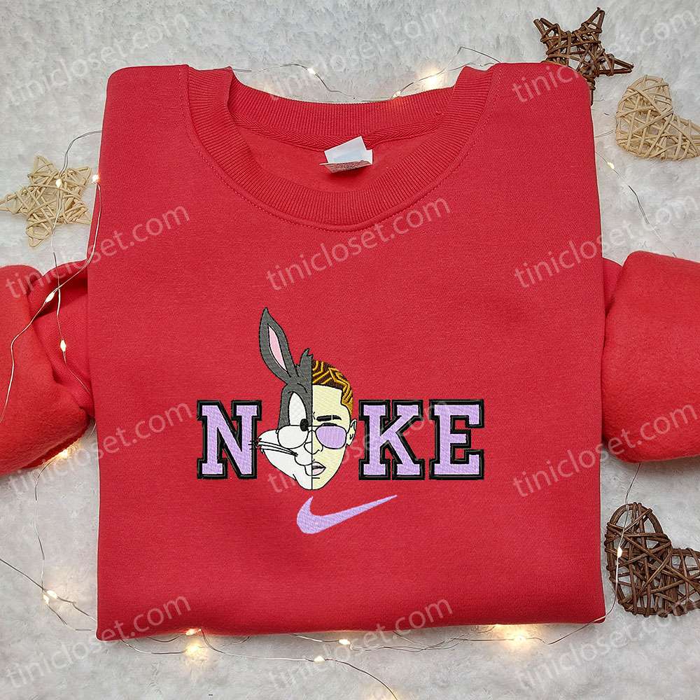 Bunny X Bad Bunny X Nike Cartoon Embroidered Shirt, Looney Tunes Embroidered Shirt, Custom Nike Embroidered Shirt