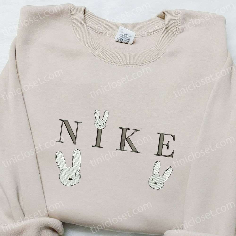 Bunny X Nike Embroidered Shirt, Animal Embroidered Shirt, Nike Inspired Embroidered Shirt
