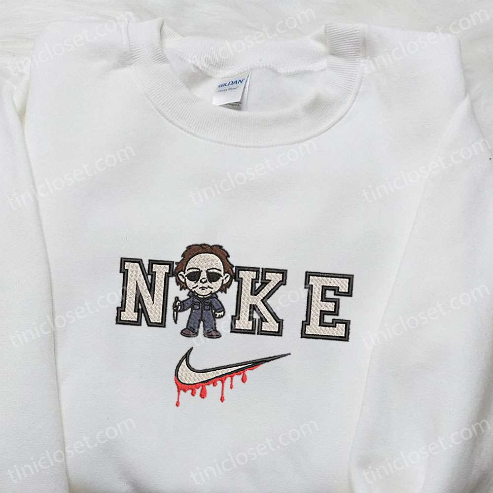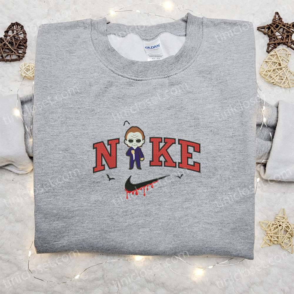 Chibi Michael Myers X Nike Embroidered Tshirt, Nike Inspired Embroidered Shirt, Best Halloween Gift Ideas