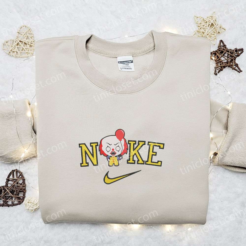 Chibi Pennywise X Nike Embroidered Sweatshirt, Horror Movie Halloween Embroidered Shirt, Best Halloween Gift Ideas