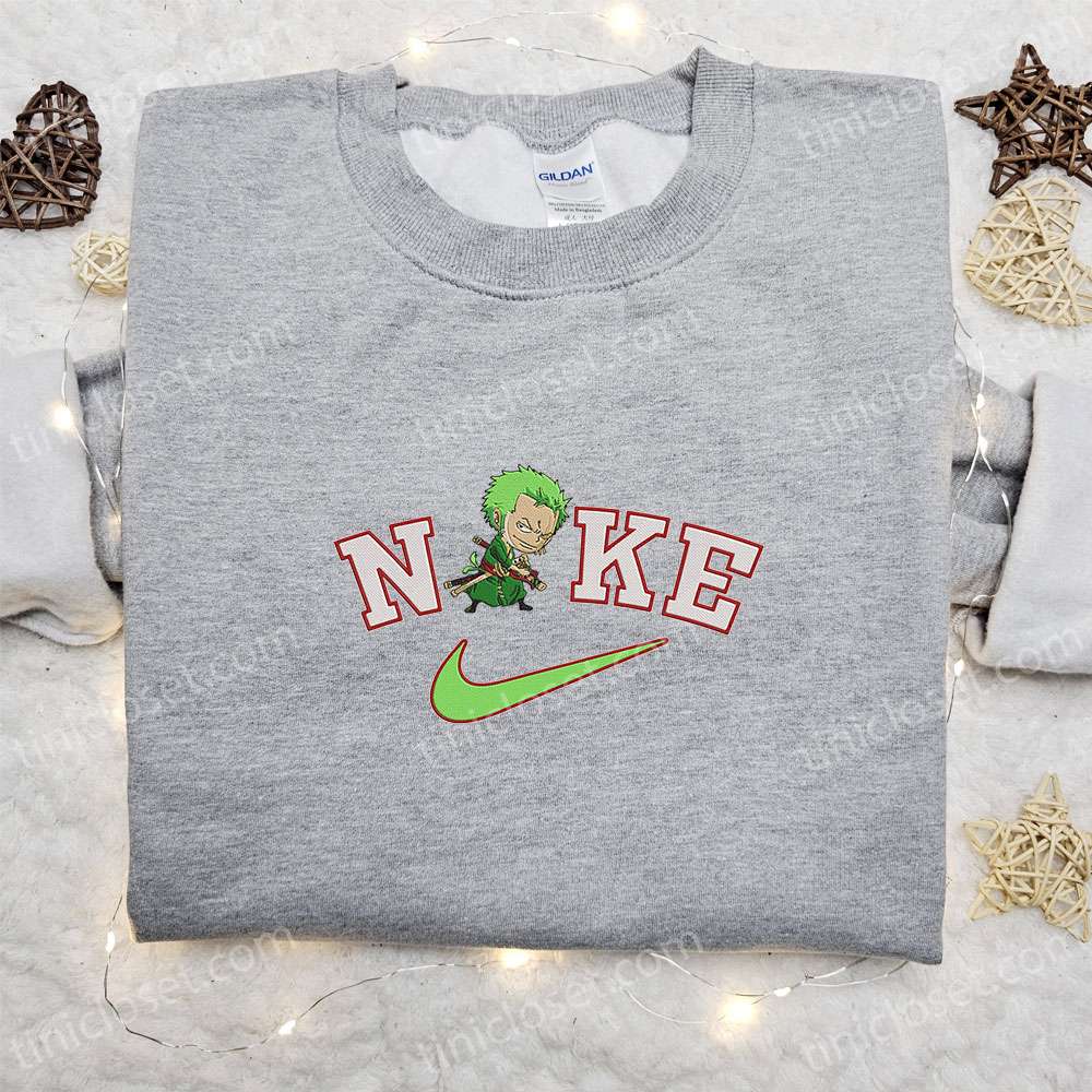 Chibi Roronoa Zoro X Nike Anime Embroidered Sweatshirt, One Piece Embroidered Sweatshirt, Nike Inspired Embroidered Hoodie