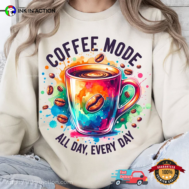 Coffee Mode All Day Every Day Colorful Art Coffee Shirt