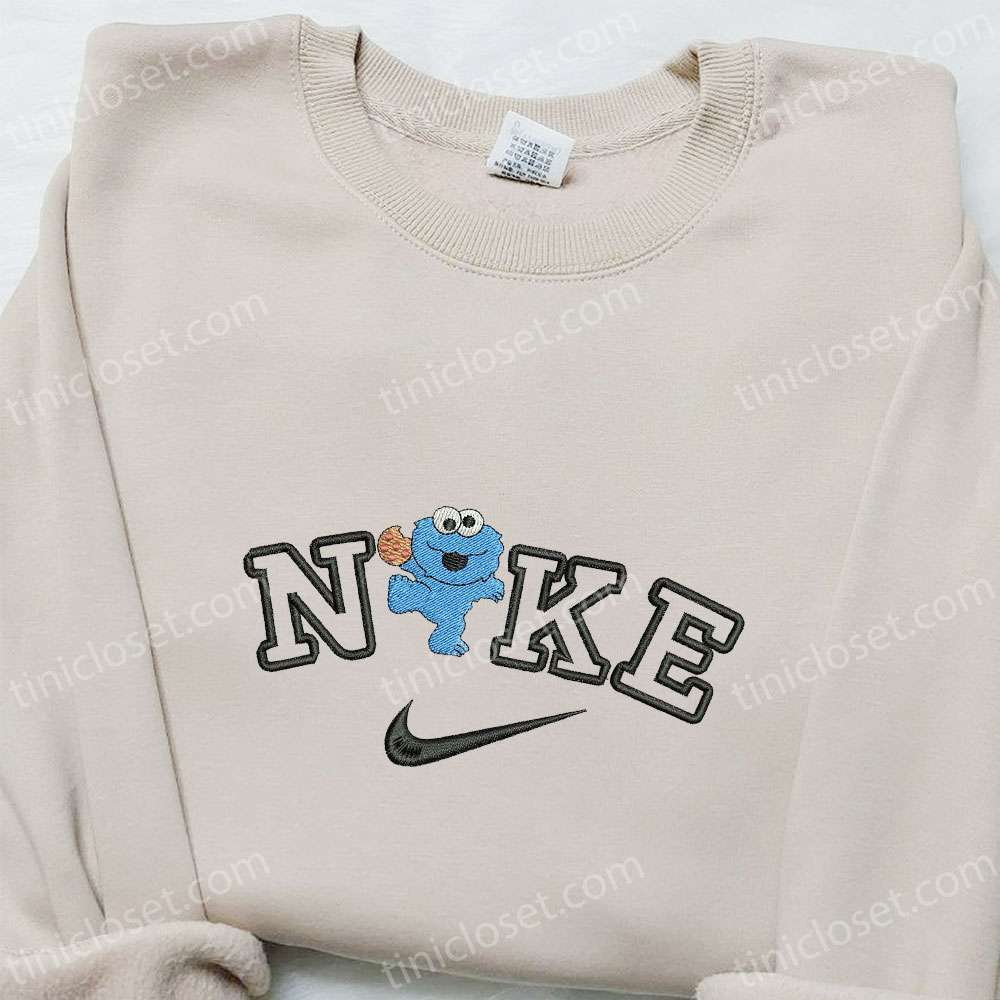 Cookie Monster X Nike Swoosh Cartoon Embroidered Hoodie, Nike Inspired Embroidered Shirt, Best Gifts For Family