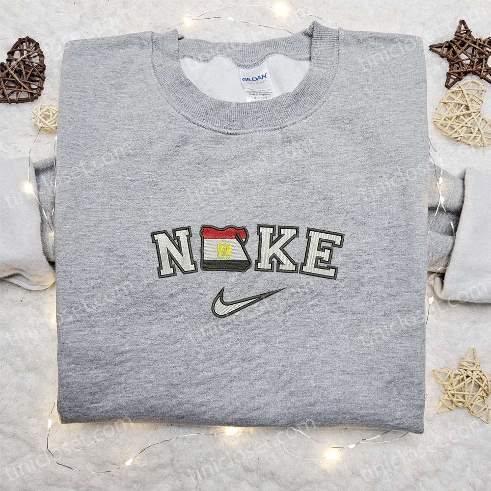 Egypt X Nike Swoosh Embroidered Shirt, Nation Flag Embroidered Shirt, Custom Nike Embroidered Shirt