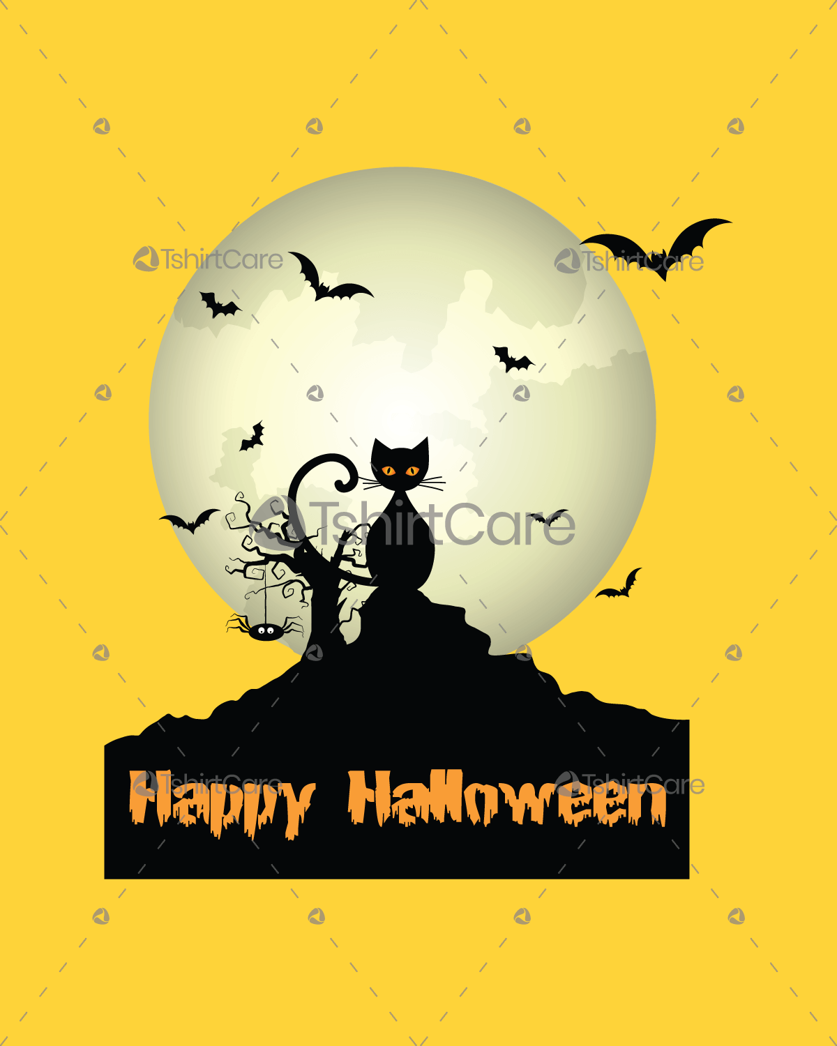 Happy Halloween Witchy Black Cat T Shirt Design Horror Cat Tee Shirts For Adult Menandwomen