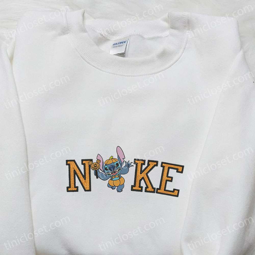 Happy Stitch Halloween Pumpkin X Nike Embroidered Shirt, Funny Disney Characters Embroidered T-shirt, Nike Inspired Embroidered Sweatshirt