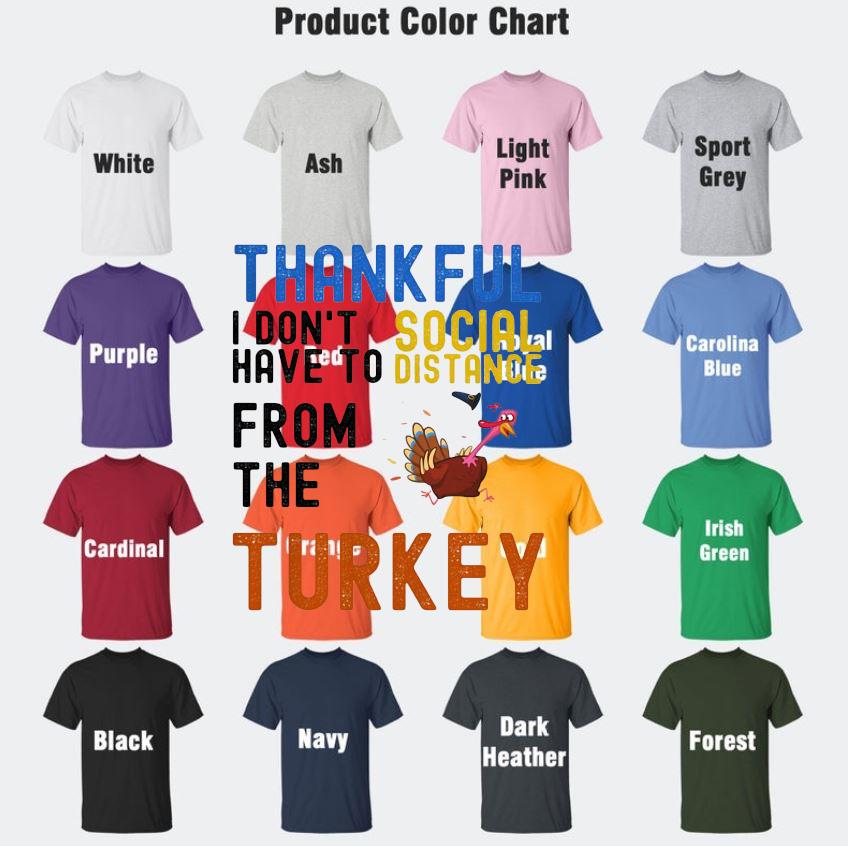 Happy Thankful I Don’t Have To Social Distance From The Turkey T-s Camaelshirt Color Chart