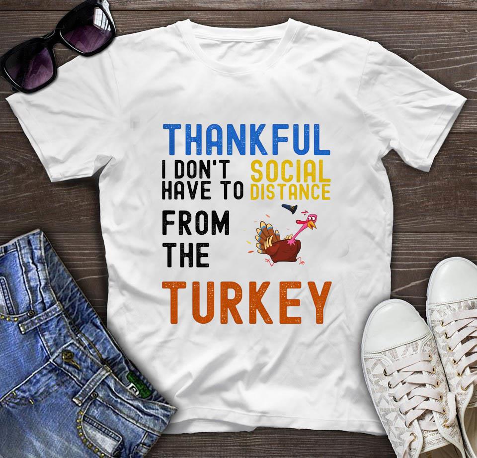 Happy Thankful I Don’t Have To Social Distance From The Turkey T-shirt