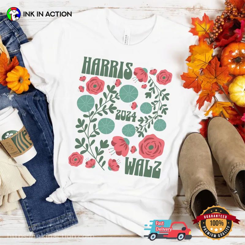Harris Walz 2024 Floral Comfort Colors T-shirt