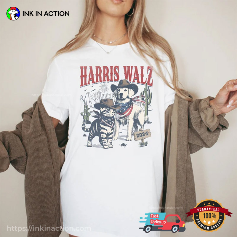 Harris Walz 2024 Funny Cowboy Cat And Dog Comfort Colors T-shirt