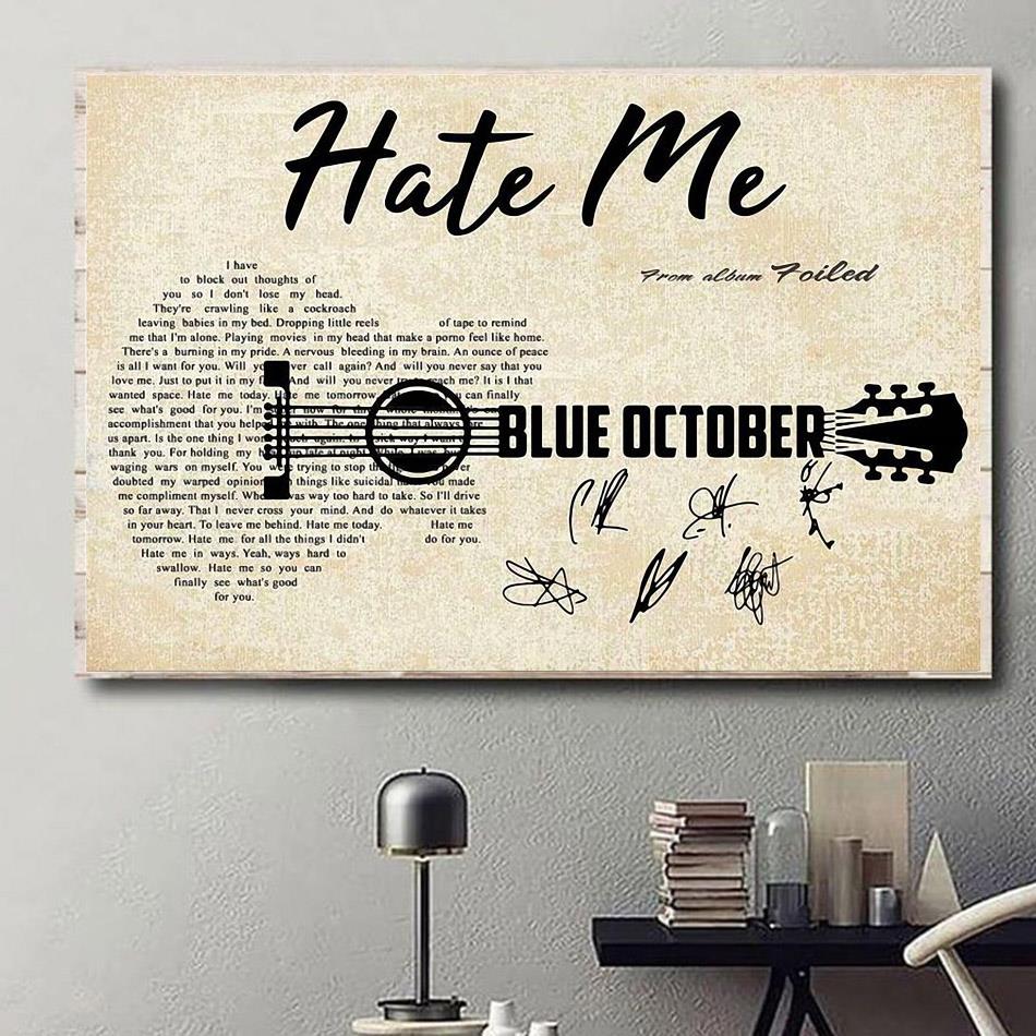 Hate Me Music Lyric Guitar Shape Print Canvas